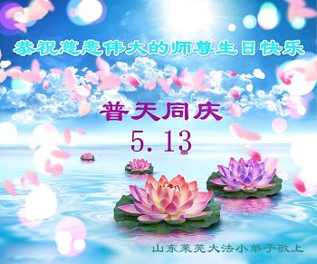 山东省莱芜市一大法小弟子恭贺法轮大法日!