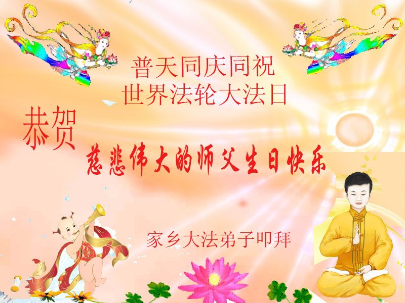 吉林省长春汽开区一资料点大法弟子恭祝师尊生日快乐!普天同庆世界法轮大法日!