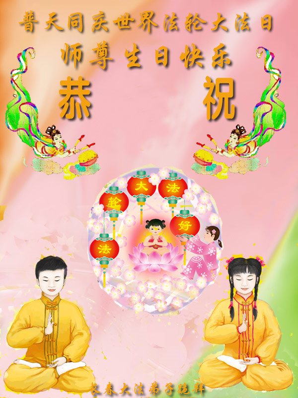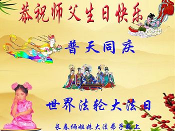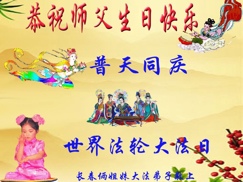 吉林省长春姐妹俩大法弟子恭祝师父生日快乐!普天同庆世界法轮大法日!