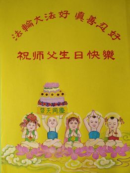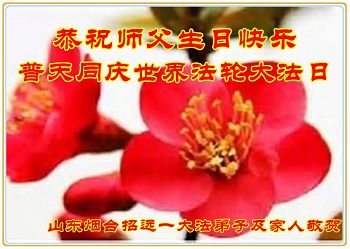 恭祝伟大的师父生日快乐!恭祝世界法轮大法日! 弟子一定珍惜这万古难遇的法轮大法,心中牢记“法轮大法好”“真善忍好”。弟子多么希望可贵的中国人都能够为自己的生命负责。在邪恶的迫害中,能够分清正邪,明辨是非,站在正义善良的一边,为自己选择一个美好的未来。 在普天同庆的日子里,感恩我们伟大的师父,感恩救度众生的法轮大法。 山东省烟台市招远市一大法弟子及家人恭祝伟大的师父生日快乐!恭祝世界法轮大法日!