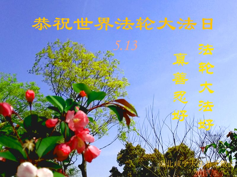长春市二十七位大法弟子五一三日敬拜师尊! 湖北咸宁大法弟子恭贺法轮大法日!
