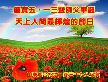 山东招远一家三十七口人恭祝伟大的师父生日快乐!暨法轮大法日!