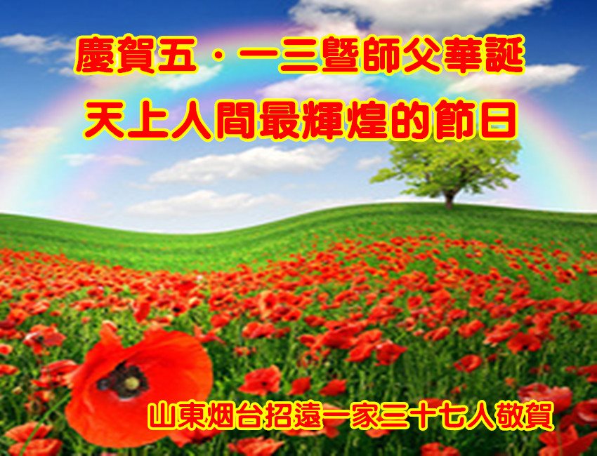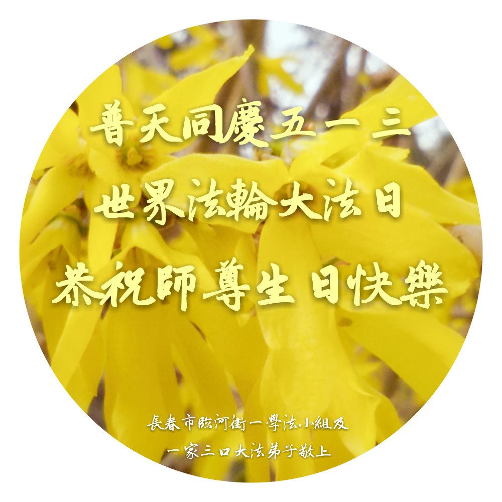 恭祝慈悲伟大的师尊生日快乐!恭贺五一三世界法轮大法日! 春光明媚艳阳光 普天同庆五一三 旧势邪光摇摇坠 新天新地新天地 吉林省长春三学法小组大法弟子祝师父生日快乐!