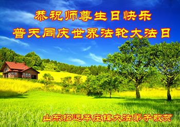 山东烟台招远辛庄大法弟子恭祝世界法轮大法日暨师尊华诞!