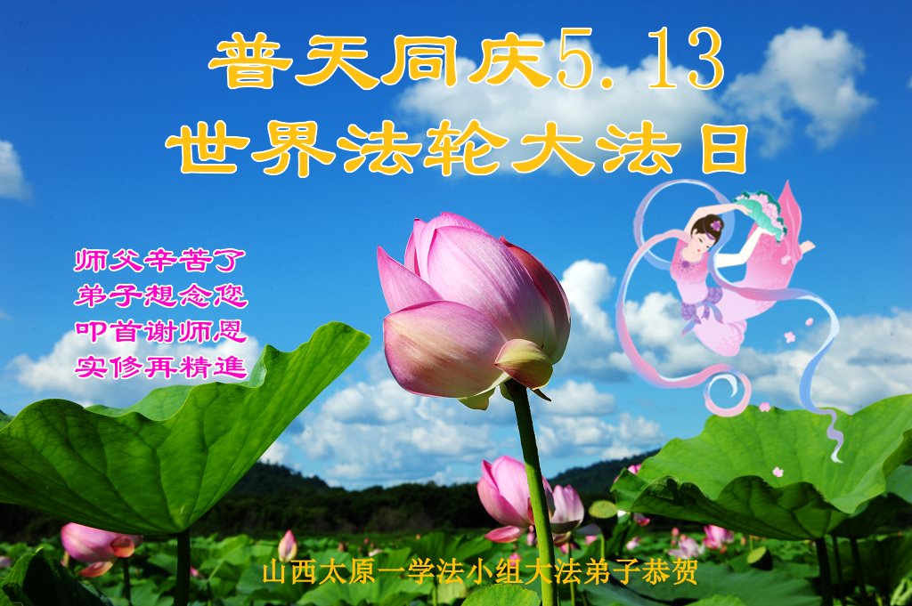 山西太原一学法小组大法弟子庆贺世界法轮大法日! 感恩师尊救度之恩!信师信法坚修到底。合十! 四川成都大法弟子恭祝师尊华诞!祝贺5.13世界法轮大法日!