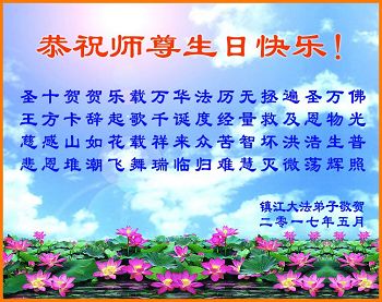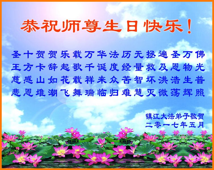 在师父生日来临之际,恭祝师父生日快乐!师父您辛苦了! 镇江大法弟子 二零一七年五月七日 江苏省镇江大法弟子一老年学法小组恭祝师尊生日快乐!感恩师父!