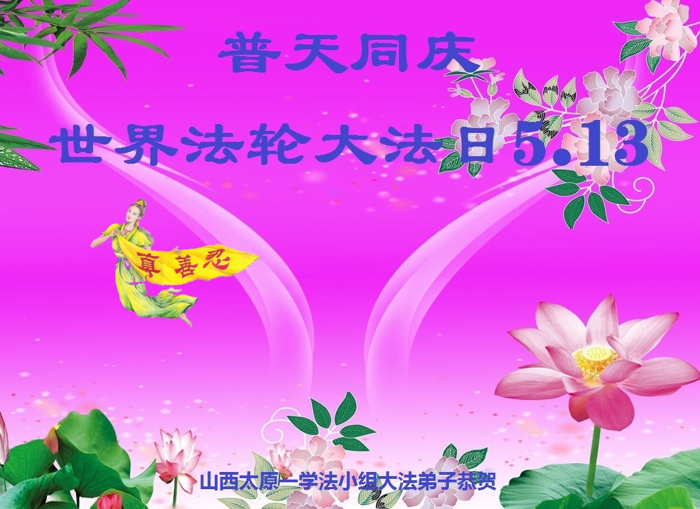 山西太原一学法小组弟子恭贺世界法轮大法日!