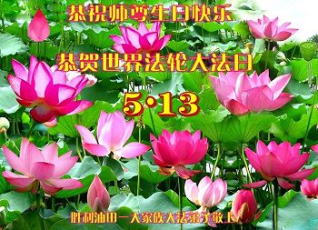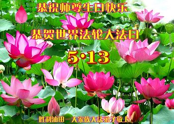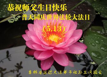 黑龙江佳木斯市桦川大法弟子:恭祝慈悲伟大的师尊生日快乐!普天同庆513世界法轮大法日! 谢谢师尊的救命之恩,师尊您辛苦了,在正法的最后时期弟子一定要努力精進,听师尊的话,让师尊少一份操劳,多一份欣慰。 弟子叩拜师尊!合十 黑龙江省佳木斯市桦川县大法弟子勤勉敬上 黑龙江省牡丹江市宁安市一老年大法弟子恭祝慈悲伟大的师尊生日快乐!普天同庆5.13世界法轮大法日!