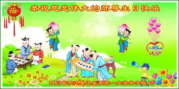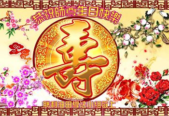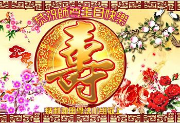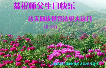 师父救度大法弟子、救度世人、救度宇宙洪微众生辛苦了!学好大法《转法轮》,真正做到才是真,善始善终要无为,忍得无怨又无恨,才能坦然跳出人世间的:名缠、利锁、情困、权与色的诱惑;才能走正自己修炼大法路上的每一步;才能身、心、行、生命被快速归正、变好、净化、升华;才能坦然同化宇宙大法真、善、忍;才能修成慈悲、无私、无执着、正法、正悟、正觉、正果:佛、道、神。二十一年法轮大法修炼路,弟子修的不好,弟子让师父操心了。在救度众生的有限时间中,弟子要学好法,修正好自己的念头与行为,炼好功,发好正念,多救人。是师父让我们上亿大法弟子成为宇宙中最幸运、最荣耀、最伟大的生命,能成为师父今世正法时期的大法徒、能成为创世主的弟子,是我们生命的无上荣光!永恒的感恩慈悲伟大的师父!弟子双手合十虔诚敬上。 四川内江大法弟子家属恭祝大法师父生日快乐!