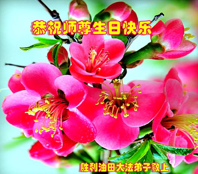 胜利油田一大家族大法弟子恭祝慈悲伟大的师尊生日快乐!恭贺法轮大法传世二十五周年!