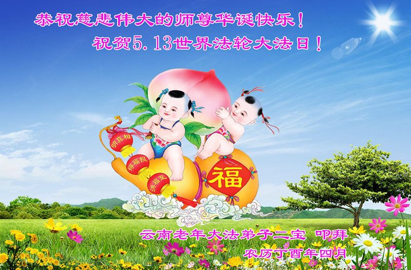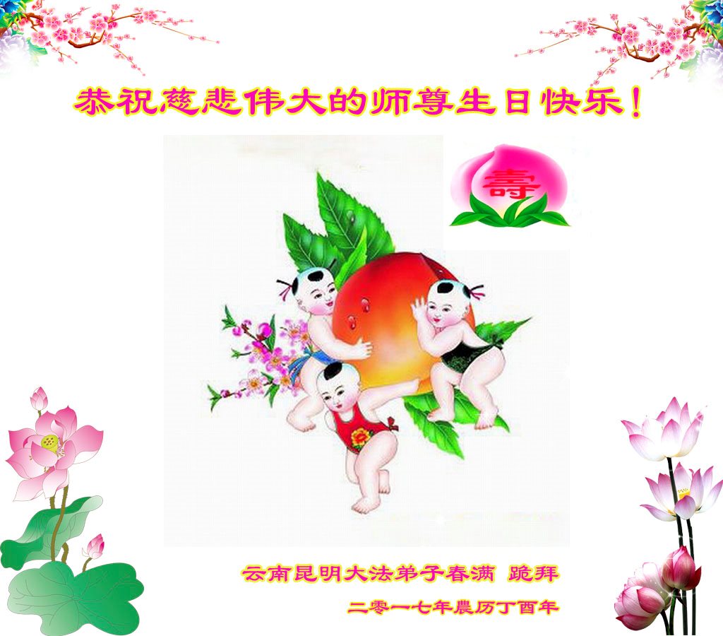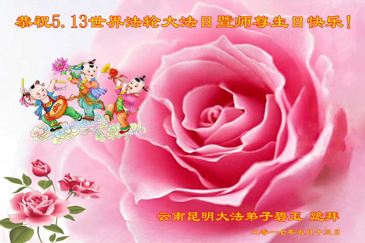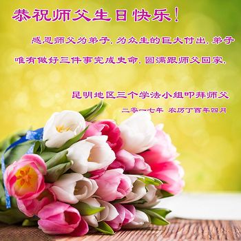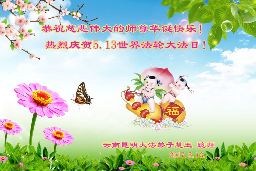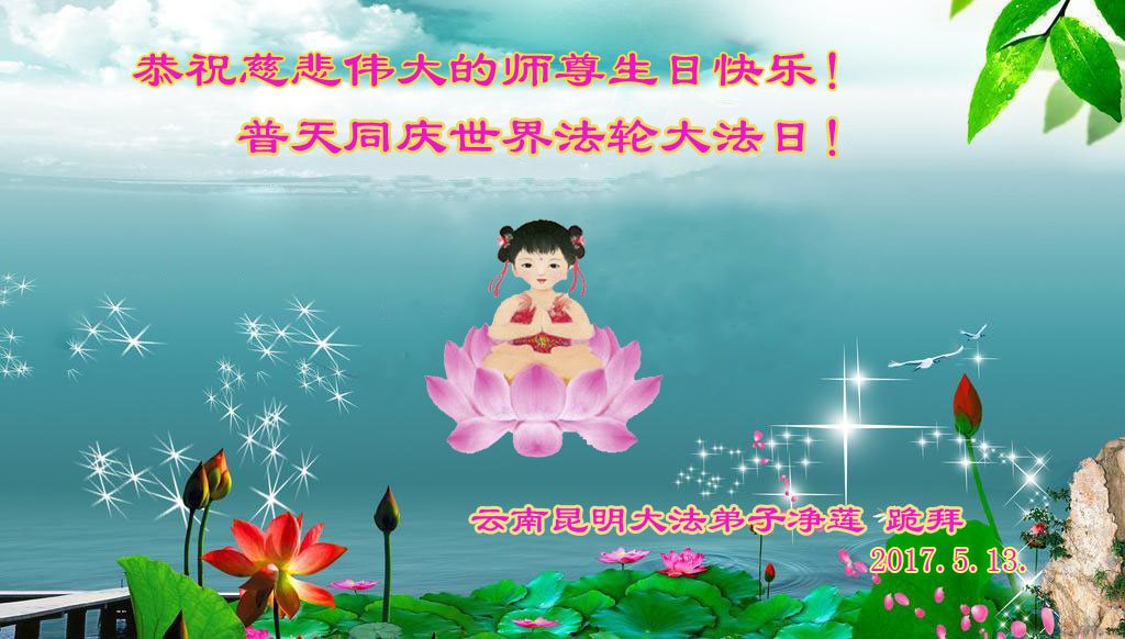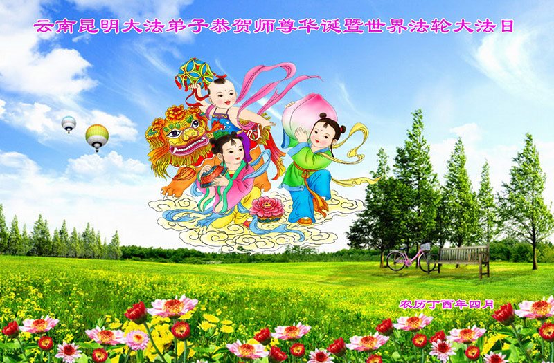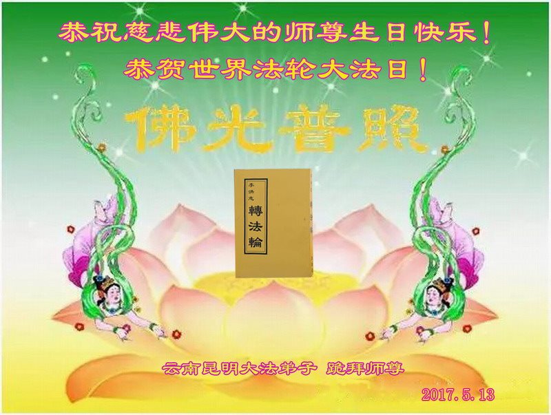 感谢师尊的慈悲救度,弟子精進实修报师恩。继续做好三件事,紧跟师尊走好最后的路。 云南昆明大法弟子恭祝师尊华诞暨世界法轮大法日!