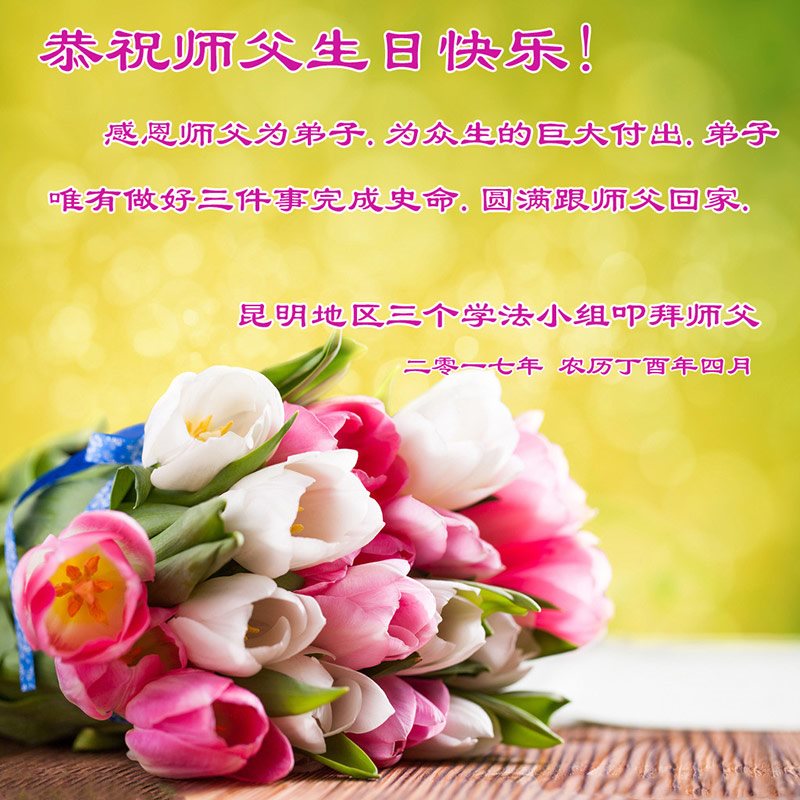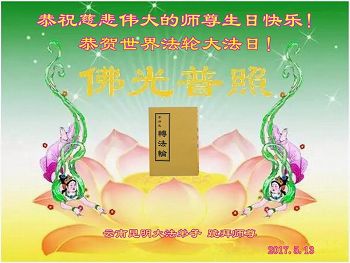 云南昆明地区三个学法小组大法弟子恭祝师尊华诞暨世界法轮大法日!