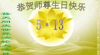 上海大法弟子恭祝慈悲伟大的师尊生日快乐!恭贺世界法轮大法日,普天同庆!