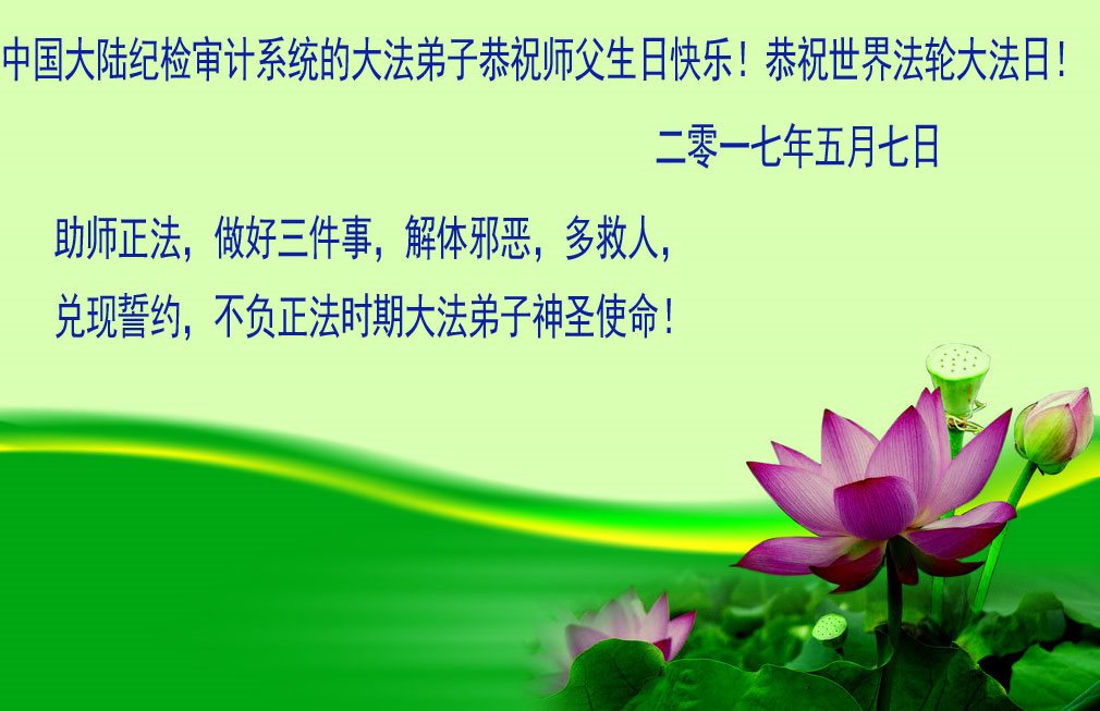 中国大陆纪检审计系统大法弟子恭祝师父生日快乐!恭贺世界法轮大法日!