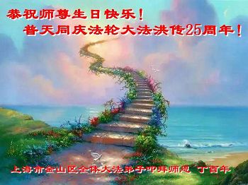 上海市金山区全体大法弟子恭祝慈悲伟大的师尊生日快乐!恭贺513世界法轮大法日!