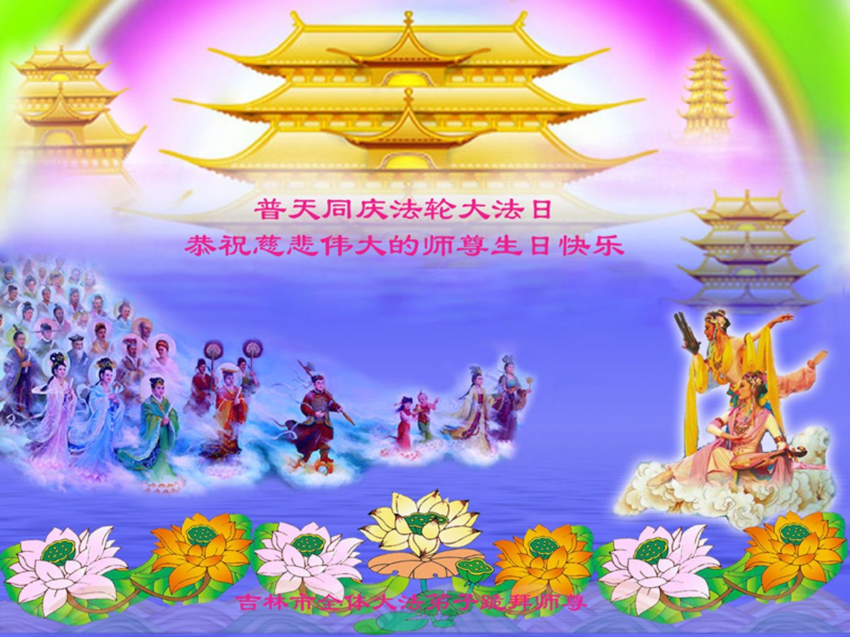 吉林市全体大法弟子恭祝慈悲伟大的师尊生日快乐!