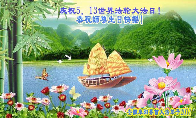 安徽省阜阳市全体大法弟子恭贺5.13世界法轮大法日!恭祝慈悲伟大的师尊六十六华诞快乐!