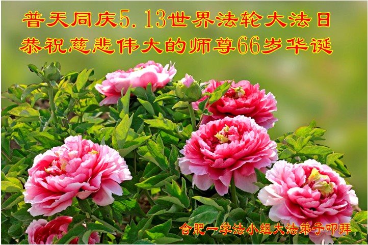 师尊无数次把我们的危难化解了,我们没有花一分钱,真心感谢师父的救度之恩!盼师父早日回中国! 安徽省合肥大法弟子恭祝慈悲伟大的师尊华诞!庆祝世界法轮大法日!