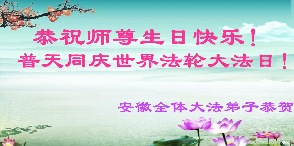 安徽省宣城市全体大法弟子恭祝师尊生日快乐!恭贺世界法轮大法日! 安徽省安庆市宿松县全体大法弟子恭祝慈悲伟大的师父生日快乐!普天同庆法轮大法日!
