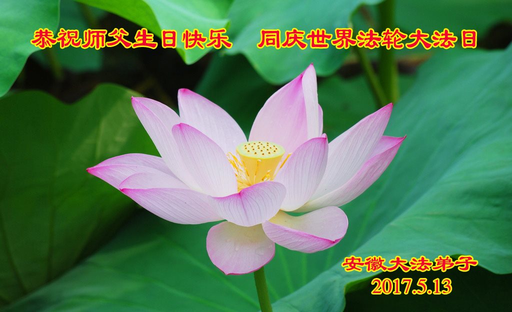 【明慧网二零一七年五月十三日】 安徽省合肥大法弟子恭祝师父生日好!庆祝世界法轮大法日!