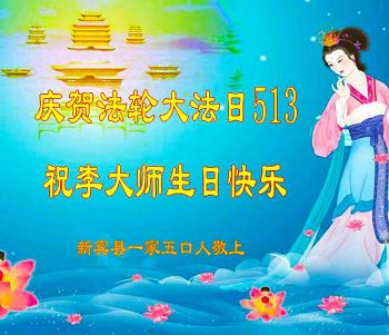 山东省临沂市蒙阴县一家三口大法弟子及明真相的家人恭祝慈悲伟大的师尊生日快乐!祝贺世界法轮大法日!