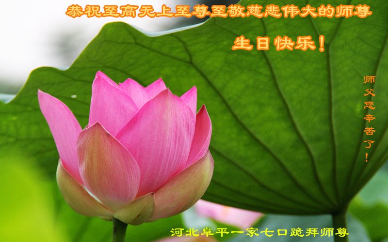 北京怀柔一名山东籍大法弟子及98名明真相的众生,共同祝贺伟大慈悲的李大师师生日快乐!您辛苦了,千言万语都无法表达您的慈悲救度。 跪拜您伟大的李大师! 河北阜平一大法弟子及明白真相的家人恭祝师尊华诞!恭贺世界法轮大法日