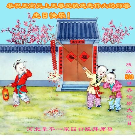 河北阜平俩大法弟子及明白真相的家人恭祝师尊华诞!恭贺世界法轮大法日!