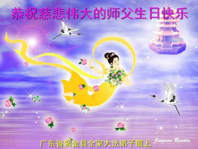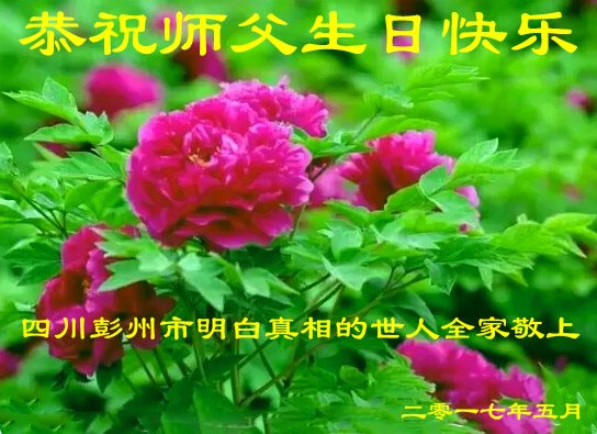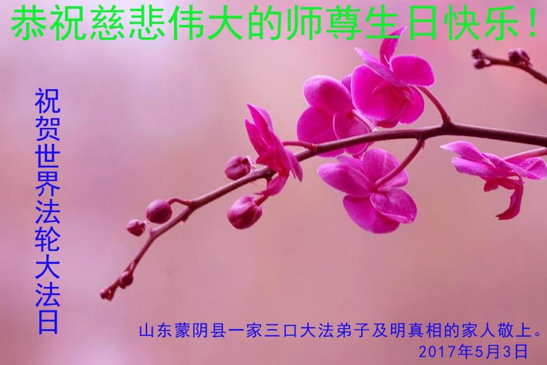 【明慧网二零一七年五月十三日】 广东省河源市紫金县全家大法弟子和明白真相的家人恭祝师尊生日快乐!师父您好!谢谢师父!