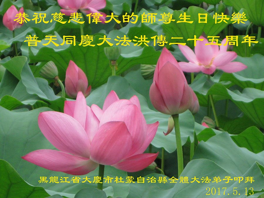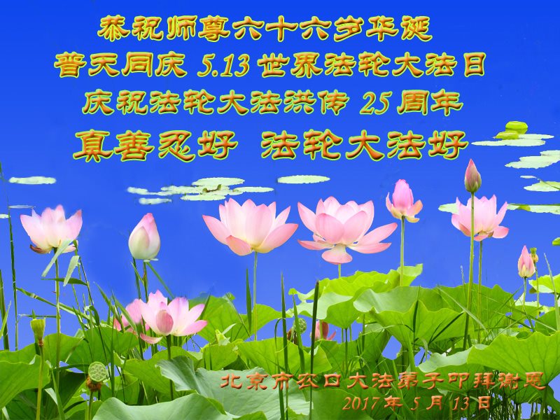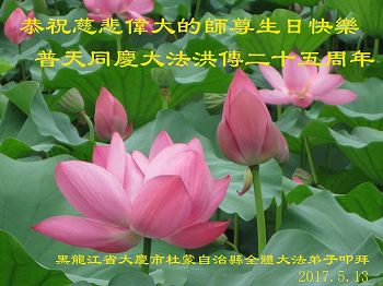 【明慧网二零一七年五月十三日】 河北省保定地区六位大法弟子恭祝慈悲伟大的师尊生日快乐!欢庆世界法轮大法日!