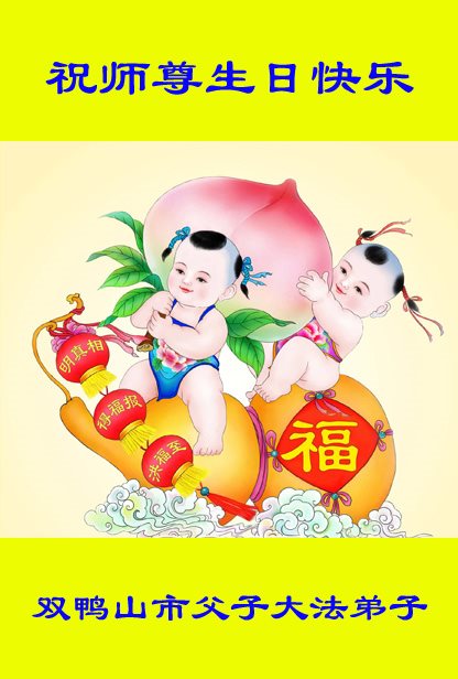 黑龙江双鸭山市父子大法弟子恭祝慈悲伟大师尊生日快乐!暨庆贺世界法轮大法日!