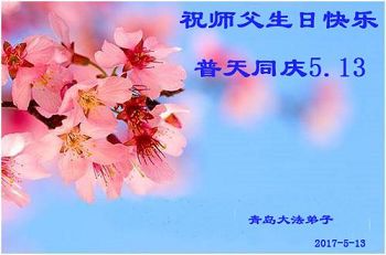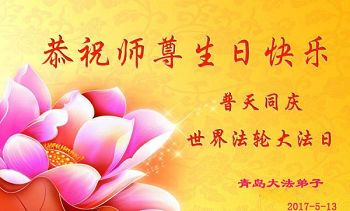山东青岛大法弟子恭祝师尊生日快乐!普天同庆世界法轮大法日!