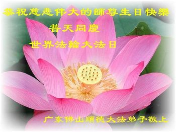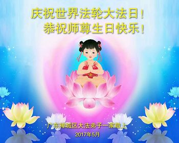 【明慧网二零一七年五月十三日】 广东省佛山市顺德大法弟子叩拜师尊!恭祝慈悲伟大的师尊生日快乐!