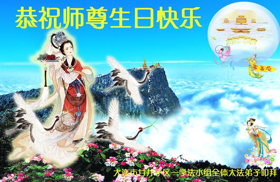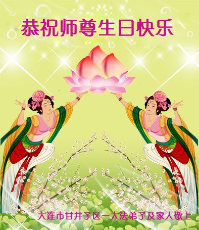 辽宁省大连市甘井子区一大法弟子及家人恭祝师尊生日快乐!