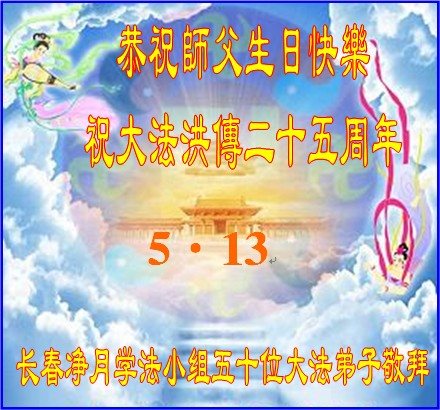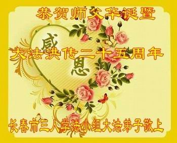 吉林省长春三人学法小组大法弟子恭祝师父华诞暨大法洪传二十五周年!