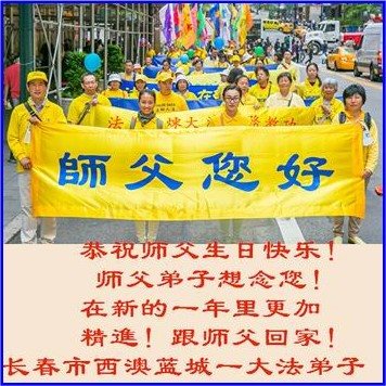 吉林省长春西澳蓝城一大法弟子恭祝师父生日快乐!