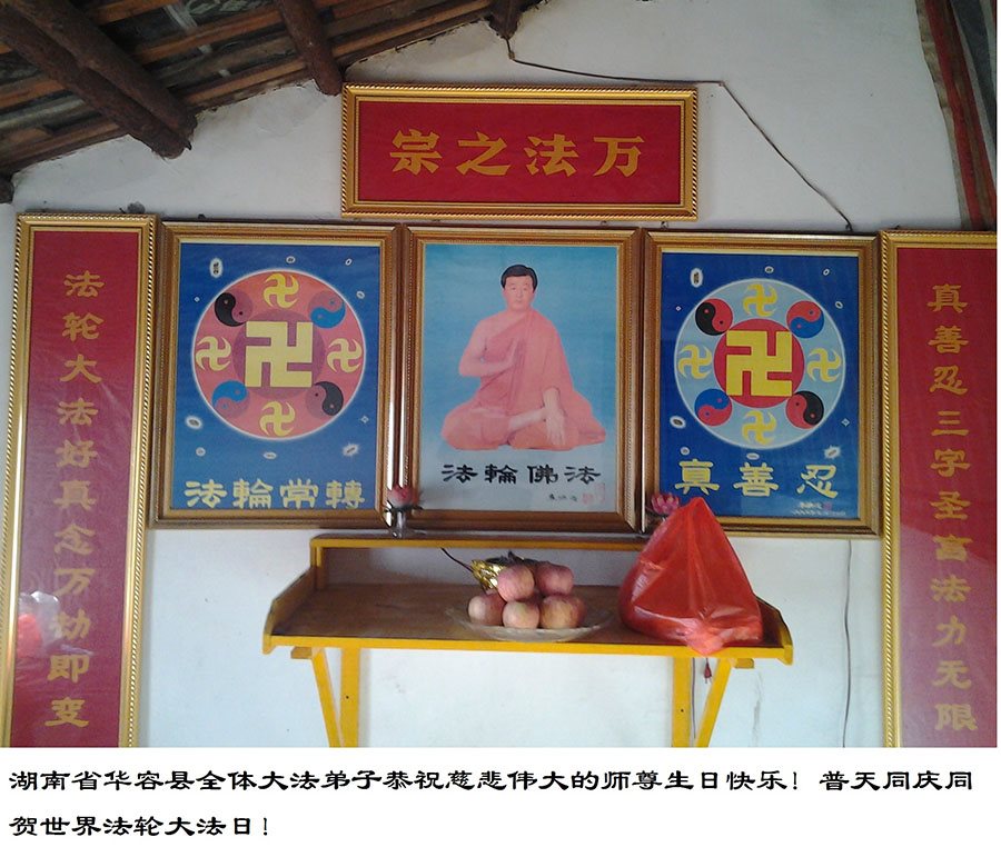 湖南省岳阳市华容县全体大法弟子恭祝慈悲伟大的师尊生日快乐!普天同庆同贺世界法轮大法日!