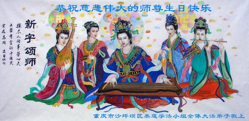重庆市沙坪坝区美莲学法小组全体大法弟子恭祝师尊生日快乐!