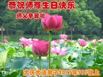 【明慧网二零一七年五月十三日】 河南新乡被迫害流离失所大法弟子恭祝师父生日快乐!