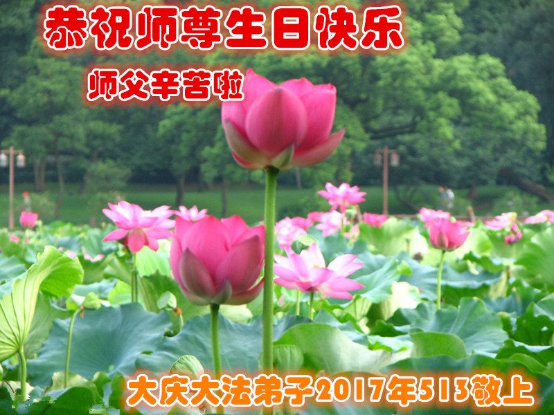 师尊辛苦了,大陆大法弟子想念您! 我们会做好三件事,相互配合、协调,遇事向内找,踏踏实实修炼,坚修大法到底,兑现誓约,惟愿师尊笑。 北京大法弟子 跪拜敬上 甘肃兰州市大法弟子恭祝师尊华诞!普天同庆5.13法轮大法日!