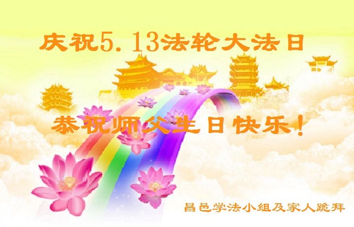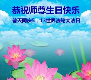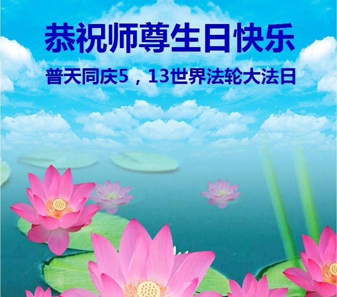 在这普天同庆的日子里,恭祝慈悲伟大的师尊生日快乐! 恭贺5.13世界法轮大法日!祝贺法轮大法洪传世界二十五周年! 弟子想念师尊!师尊您辛苦了! 感恩师尊的佛恩浩荡,谨记师尊的教诲,更加珍惜修炼的万古机缘,精進实修,努力做好三件事,救度更多众生,不辜负师尊的慈悲救度。 山东省潍坊市寿光市农村大法弟子恭祝慈悲伟大的师尊生日快乐!庆祝“世界法轮大法日”和法轮大法洪传二十五周年!