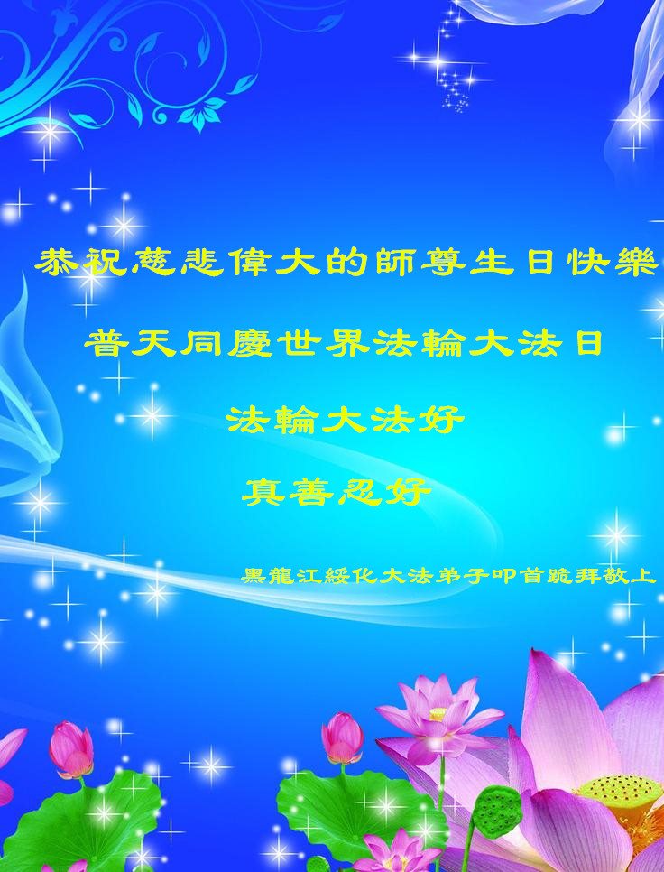 黑龙江省大庆大法弟子恭祝慈悲伟大的师尊生日快乐!普天同庆法轮大法日洪传二十五周年!