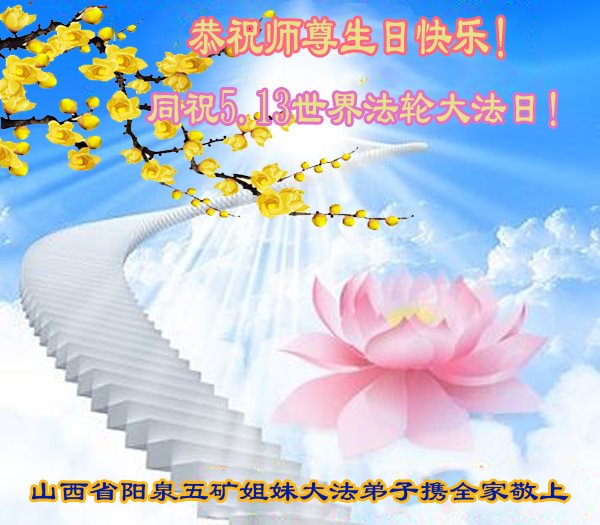 山西省阳泉市全体大法弟子恭祝师尊生日快乐!同祝5.13世界法轮大法日!