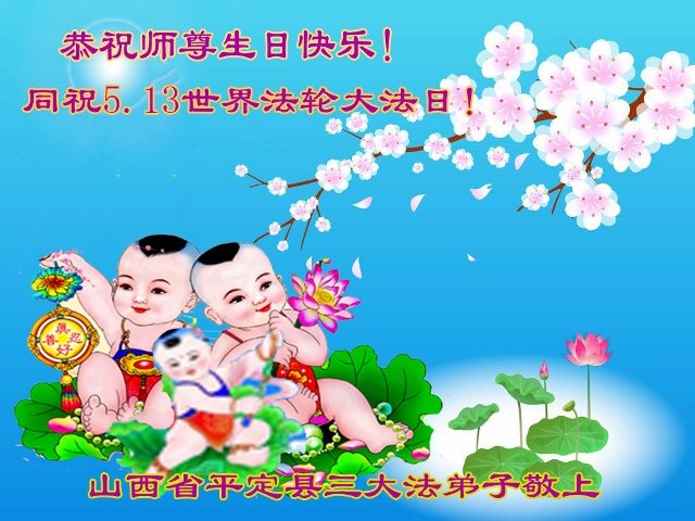 山西省阳泉市平定县一大法弟子恭祝师尊生日快乐!同祝5.13世界法轮大法日!