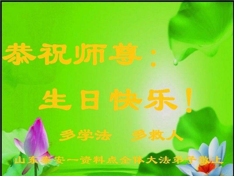 山东泰安市一资料点全体大法弟子恭祝师尊生日快乐!