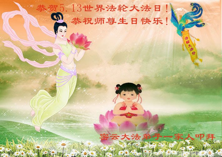 重庆市一大法弟子全家恭祝师父生日快乐!普天同庆世界法轮大法日!