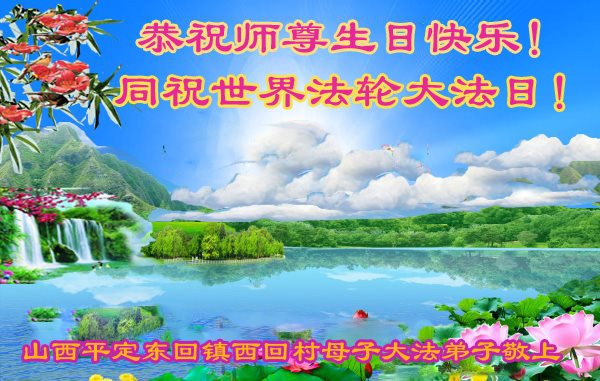 山西省阳泉市平定县三大法弟子恭祝师尊生日快乐!同祝5.13世界法轮大法日!