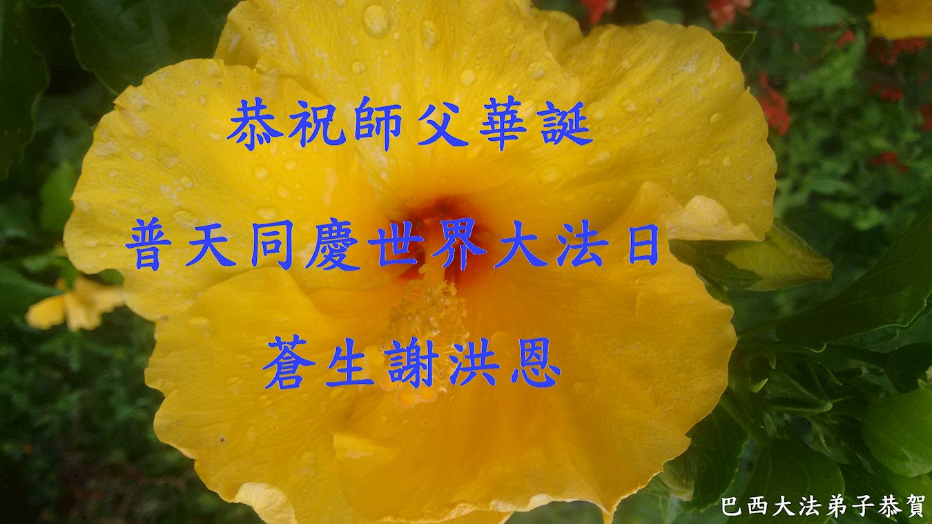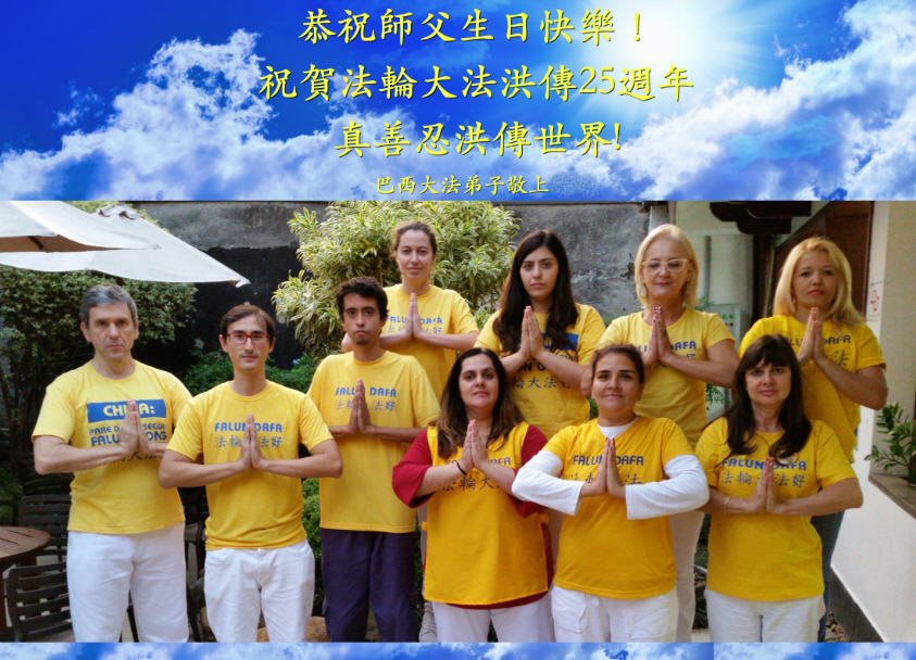 巴西大法弟子恭祝师父生日快乐!祝贺法轮大法日洪传世界二十五周年!
