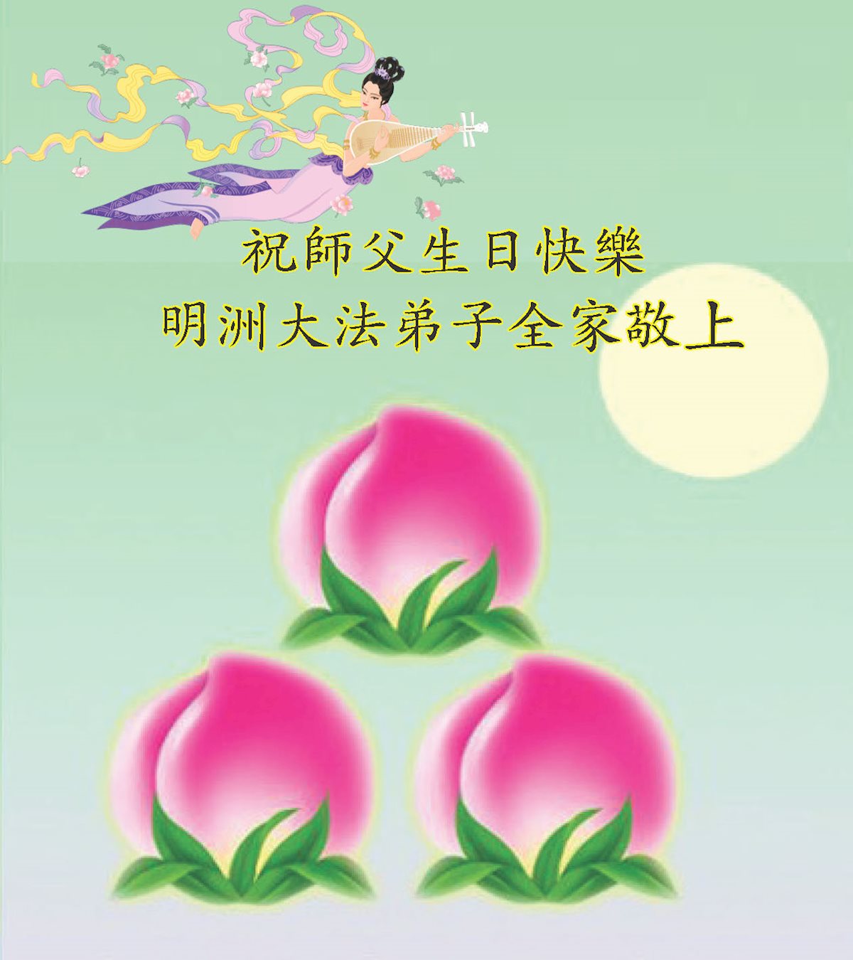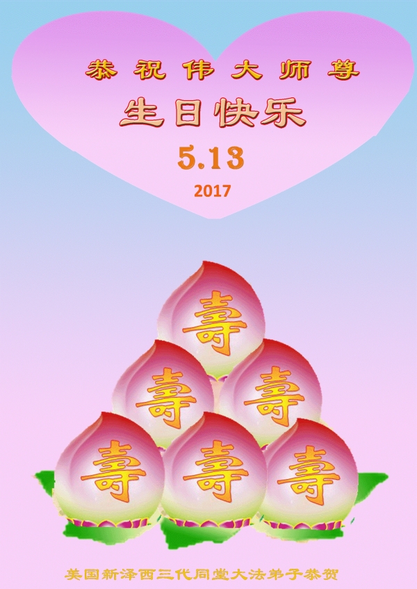 谢谢师父!弟子努力做好三件事,听师父的话,永远和师父在一起。 美国新泽西三代同堂大法弟子恭祝伟大的师尊生日快乐!