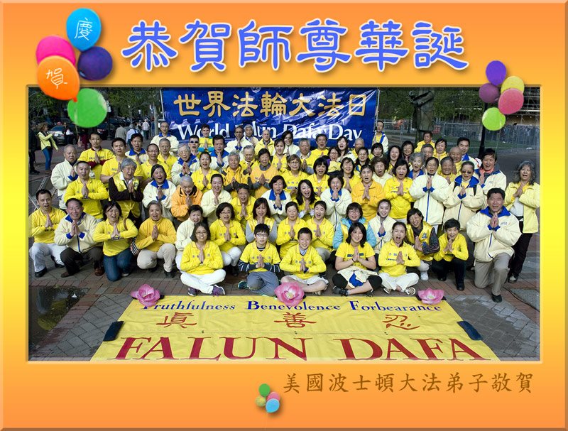 美国波士顿大法弟子恭贺师尊华诞暨世界法轮大法日!