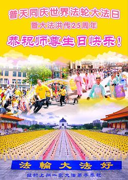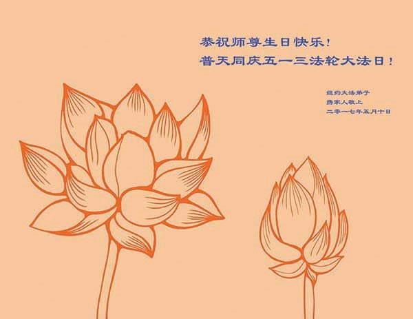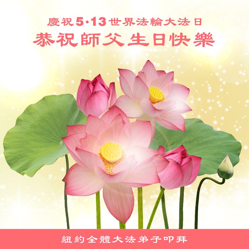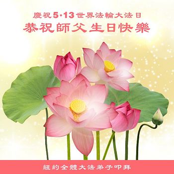 纽约大法弟子恭祝师父华诞!在普天同庆世界法轮大法日的时刻,弟子牢记师父的教导,做好三件事。